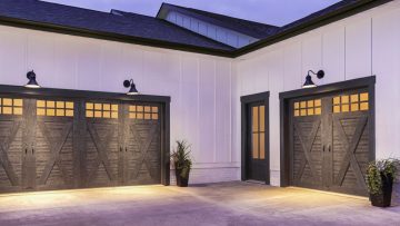Clopay Canyon Ridge Carriage House (4-Layer) garage doors bring together the carriage house designs of the past and today’s technology, functionality and energy efficiency. These doors are constructed with steel for strength and durability, and molded composite overlays for beauty and realism. These doors feature: