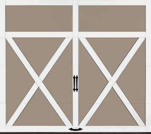 - Garage doors come complete with spade lift handles and step plates. Additional decorative hardware options available.